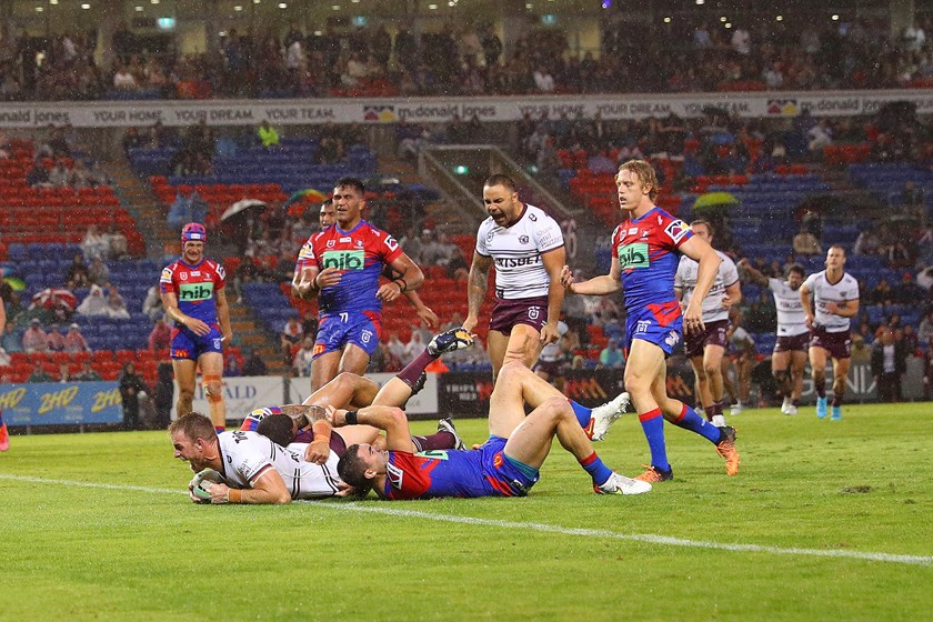 For 30-year-old Davey had just crossed for Manly’s first try in their 30-6 win over the Newcastle Knights in heavy conditions at McDonald Jones Stadium on Thursday night.
