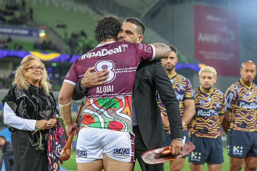 Aloiai had the honour of leading the Manly Warringah Sea Eagles out alongside Melbourne Storm legend and proud Indigenous man, Greg Inglis.