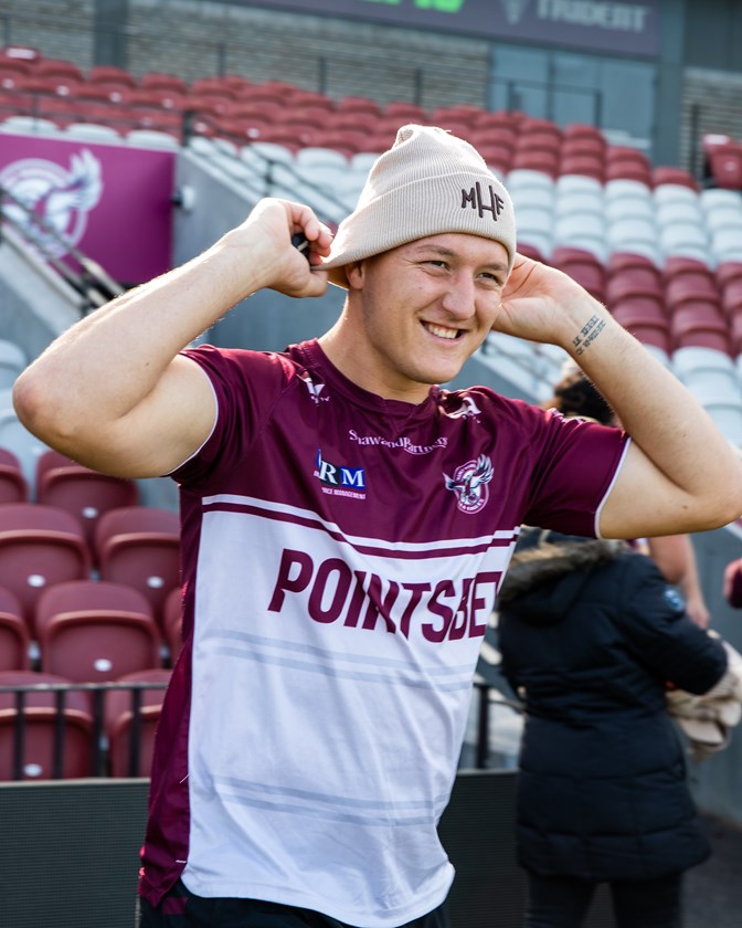 The Sea Eagles players have been proudly wearing their beanies all week and will do so again tonight when they run out for the match against the Melbourne Storm.