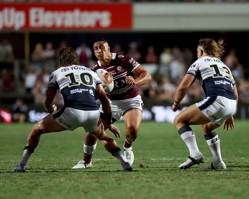 Lock for Sea Eagles is number 13 Jake TrbojevicLock for Raiders is number 16 Trey Mooney