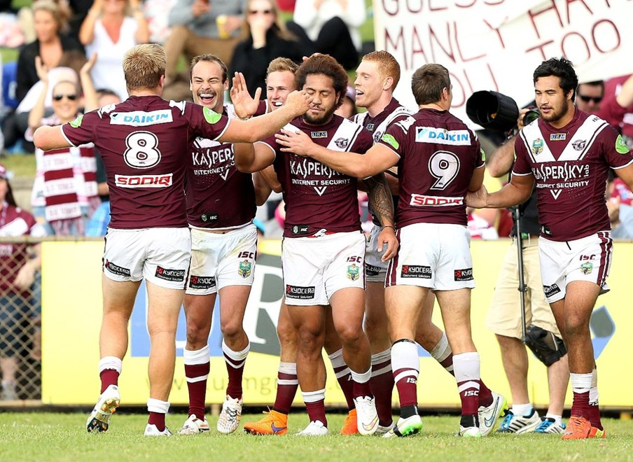 Last time at Brookvale Oval: Two late tries in the final three minutes to Jamie Lyon and Tom Symonds gave the Sea Eagles a late win that sent them to the top of the table late on in the 2014 season.