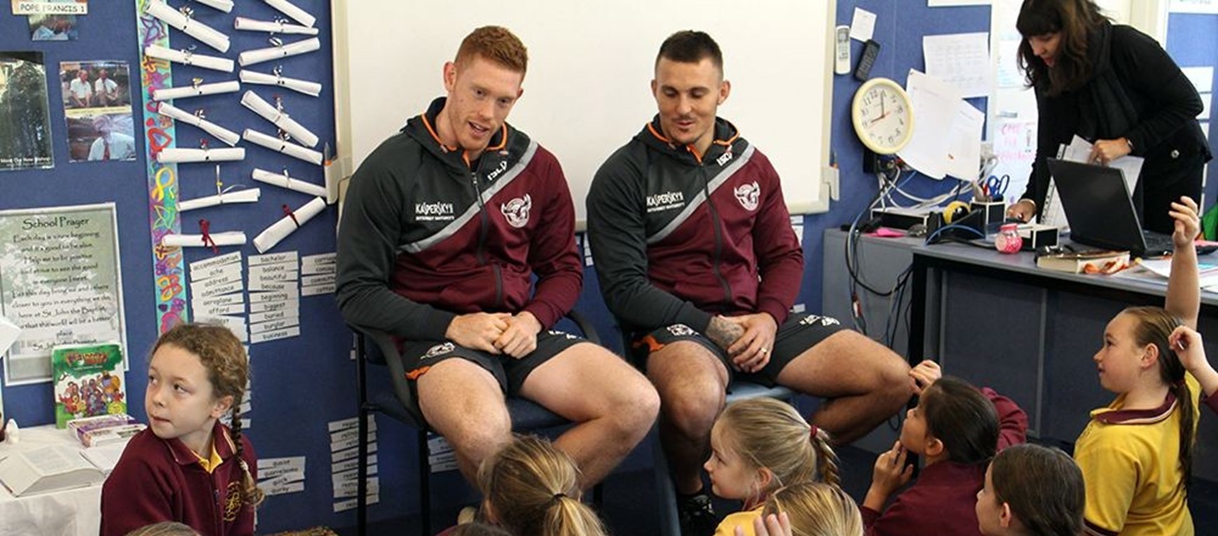 The Manly Sea Eagles players have been helping out at local schools during their spare time to assist young pupils in developing their reading skills.