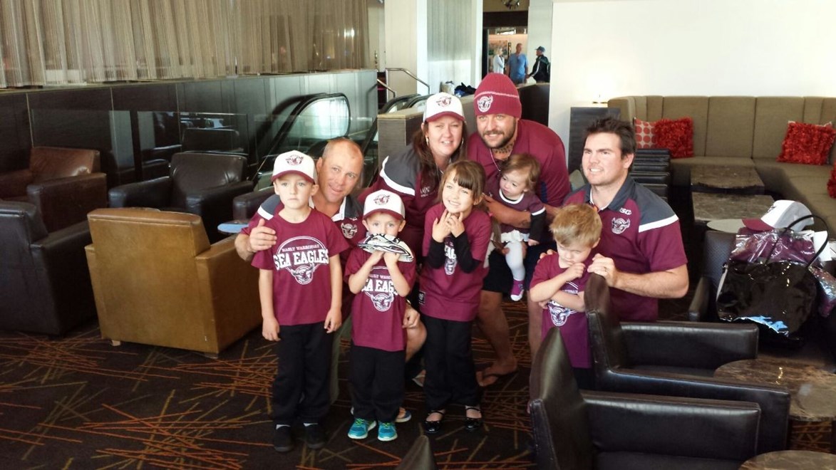 Parents Jaryd and Belinda, and their five children, are passionate Sea Eagles supporters who left Sydney a few months ago to start a fresh life in Queensland.