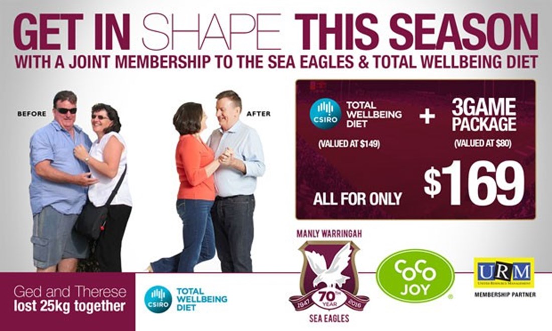 The Manly Sea Eagles has partnered with the CSIRO Total Wellbeing Diet to offer Manly supporters a special discount that is only available until January 31.