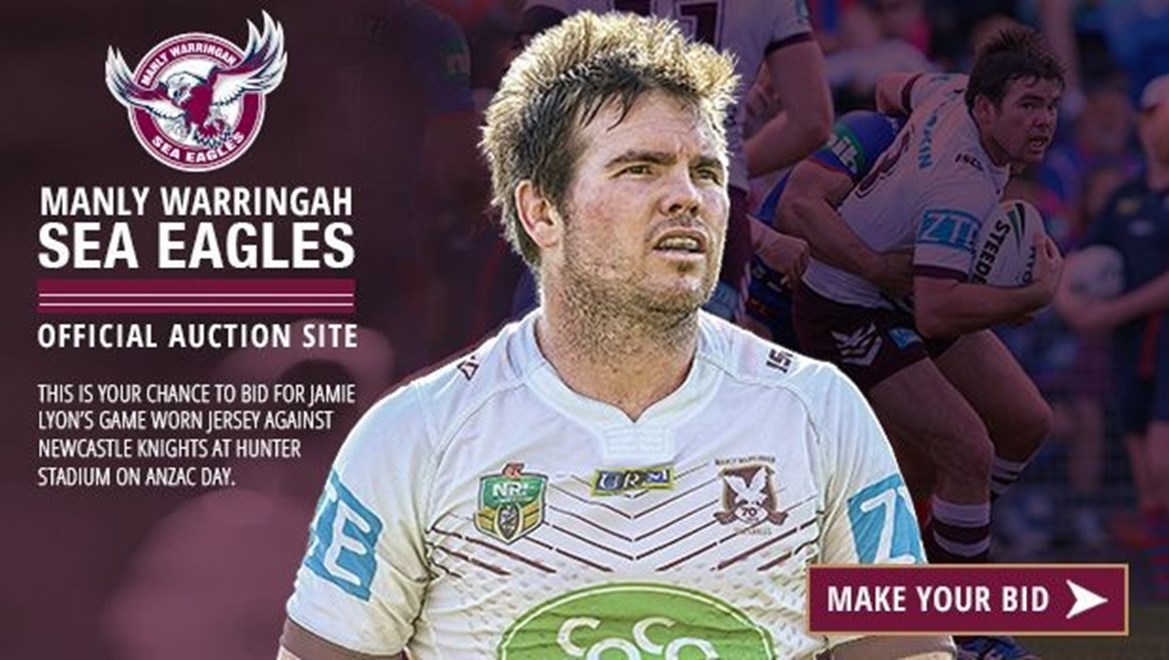 To celebrate the wonderful career of Manly centre Jamie Lyon, the Sea Eagles are giving supporters the chance to bid on one of his game worn jerseys.
