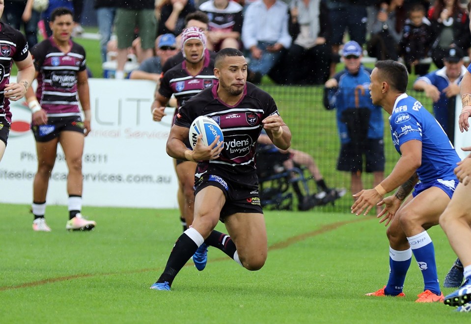 Jamil Hopoate takes on the Newtown Jets defence at H.E Laybutt Sporting Complex last Sunday. Photo: Bryden Sharp Photography.