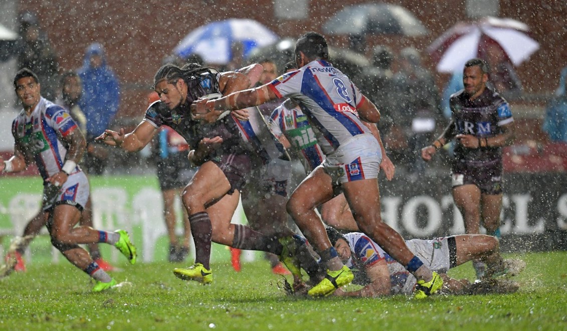 Three minutes later, the Sea Eagles crossed for the first try when former Knights winger Akuila Uate continued his fine form when he dived over in the right corner. Winger Matthew Wright converted try for 6-2 lead.