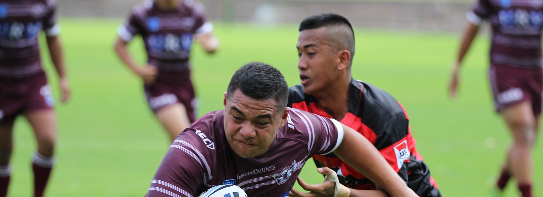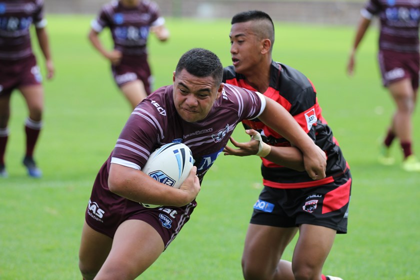 The Sea Eagles opened the scoring in the 19th minute when forward Siua Fotu (pictured) pushed off several defenders in a barnstorming run to score next to the posts. Half-back Teddy Wilson converted for a 6-0 lead.