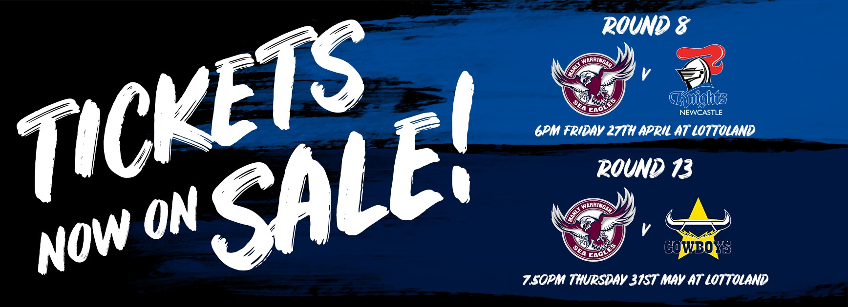 Sea Eagles supporters can now purchase tickets for the Round 8 and 13 matches at Lottoland.