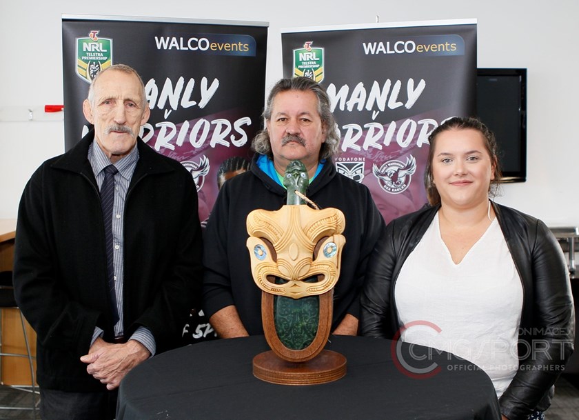 The taonga trophy was carved and designed by Ngāi Tahu master carver Fayne Robinson, himself an ex-player and keen supporter of league, who also designed the Manly playing jersey for the game, and showcases a mere pounamu (short hand-club) encased in a wood carving.