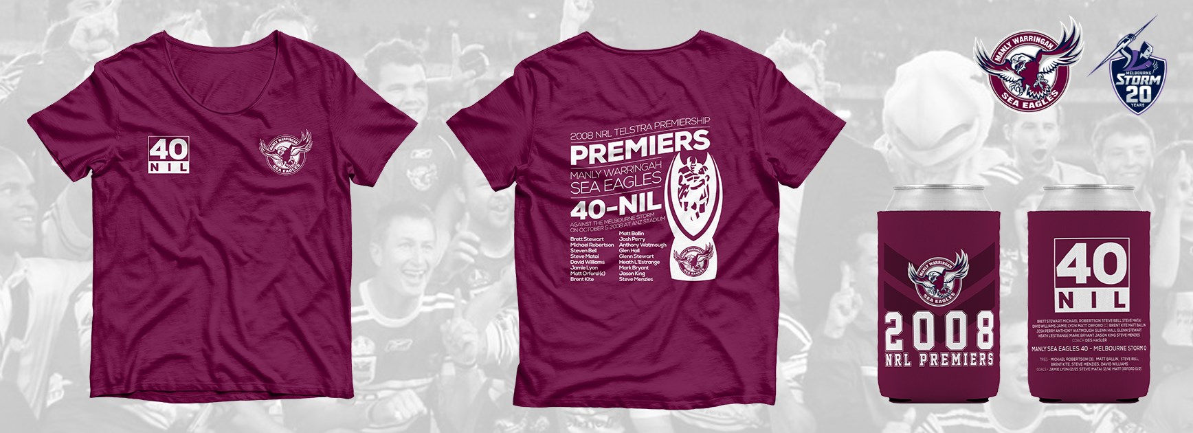 The Sea Eagles have produced a commemorative 2008 Premiers t-shirt and are offering supporters a great $40 Ticket & Tee offer. This includes a $40 General Admission Adult ticket and a commemorative 2008 Premier t-shirt. This is available pre-sale only, click here to purchase. Ticket offer to cease 4:00pm Friday 13 July, 2018.