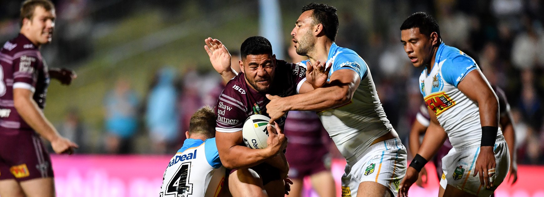 Manly prop Martin Taupau. ©Grant Trouville/NRL Photos