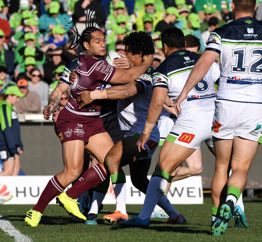 The Raiders went to an 8-0 lead in the 35th minute when Croker converted a penalty goal from next to the posts after Manly had to soak up relentless pressure on their line.