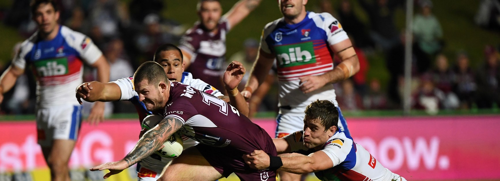 Cust was not to be denied in the 65th minute when he dived over from a pass from Cherry-Evans. Garrick converted from next to the posts to leave the Sea Eagles trailing 14-12.