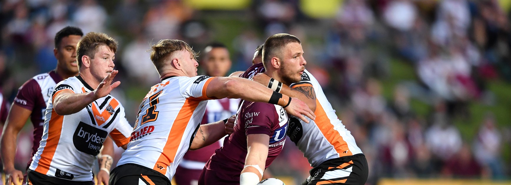 Manly Warringah Sea Eagles suffered a heart-breaking 34-32 loss to the Wests Tigers at Lottoland tonight in round 17 of the Telstra Premiership.