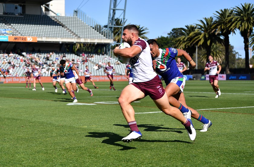 The Sea Eagles got off to a flying start when winger Reuben Garrick latched onto a beautiful floating pass from half-back Daly Cherry-Evans to score in the corner in the third minute. Garrick converted from the sideline for a 6-0 lead.