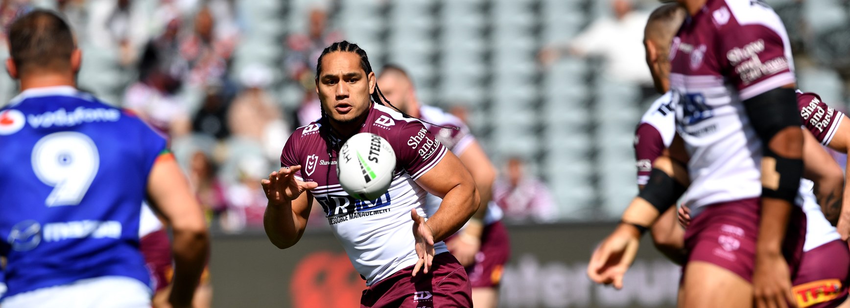 The Sea Eagles were then punished for a mistake from the re-start when second-rower Eliesa Katoa hit a hole from Harris-Tavita to score near the posts. Harris-Tavita converted for a 12-10 lead after 20 minutes.