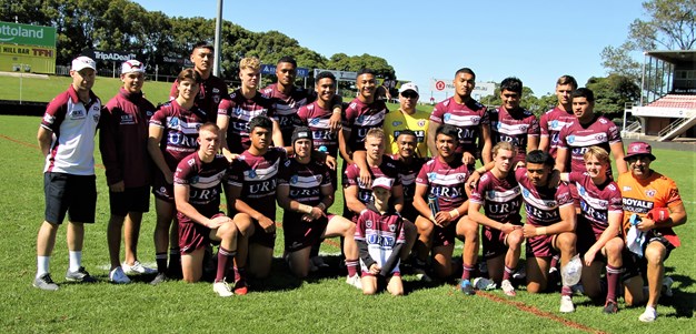 Second-rower Drew Williams made a one-on-one strip 40 metres out four minutes later as the Manly side continued with their attack. Captain Josh Feledy was close to scoring on the left edge but was unfortunately held up.