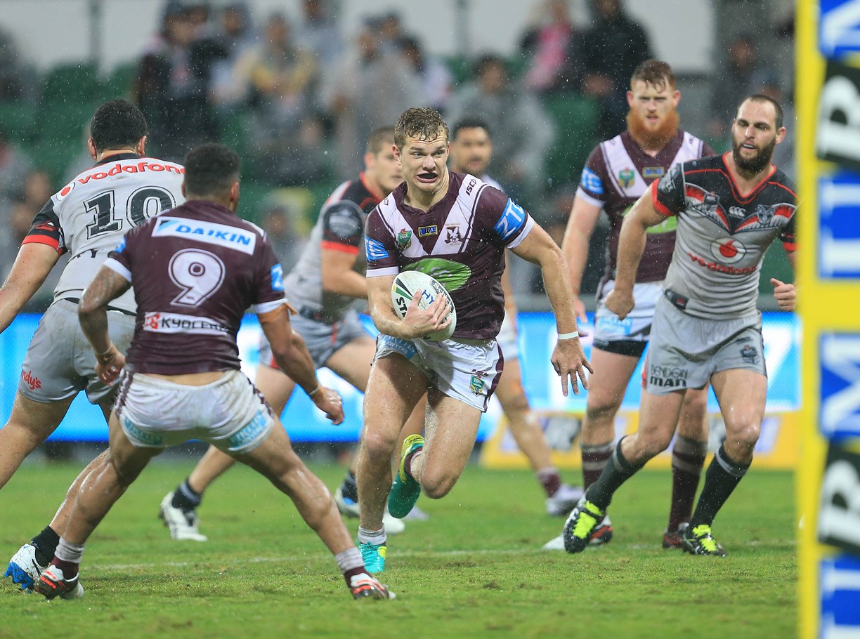 Champion Manly full-back Tom Trbojevic plays his 100th NRL game against the Warriors at Lottoland this Sunday. We take a look back at some of the best snaps from his career that has seen him score 51 tries for the Sea Eagles. Pics: NRL Photos. #Turbo100