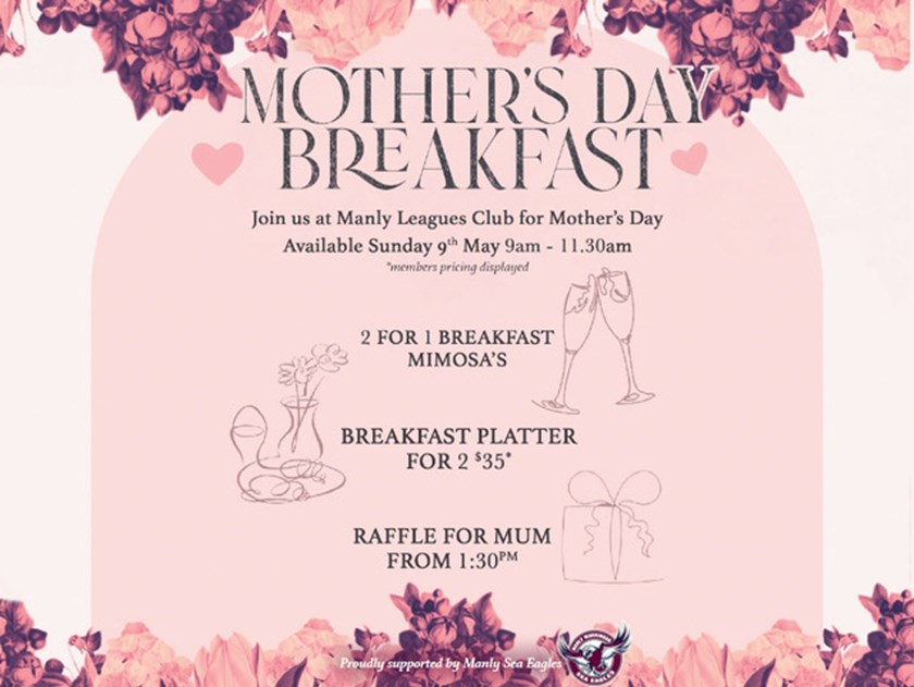 Manly Leagues Club will be celebrating Mother's Day from 9am with a variety of offers. Don't miss out on: