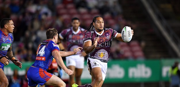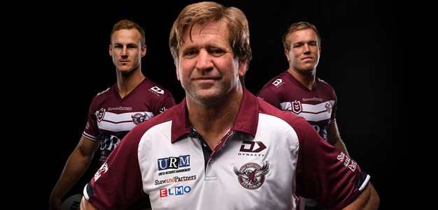 Sea Eagles prop Martin Taupau proudly presented the jerseys to the four Manly representatives at the Summit on Monday.