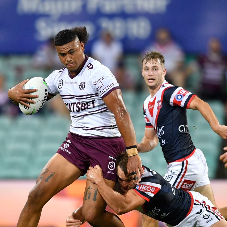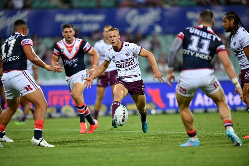 Manly went close to replying three minutes later and nearly cracked the defence after a strong run down the middle from hooker Lachlan Croker. A grubber kick from captain Daly Cherry-Evans was defused by the Roosters just in front of their line.