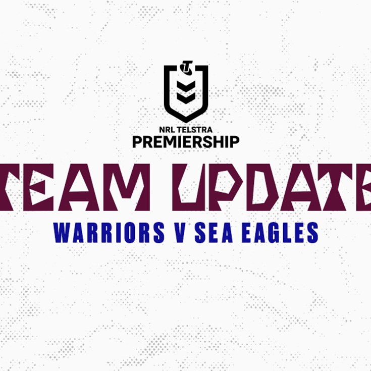 Manly Warringah Sea Eagles Coach Des Hasler has updated his Round 19 squad to take on the Dragons at 6pm this Friday at Kogarah Oval.