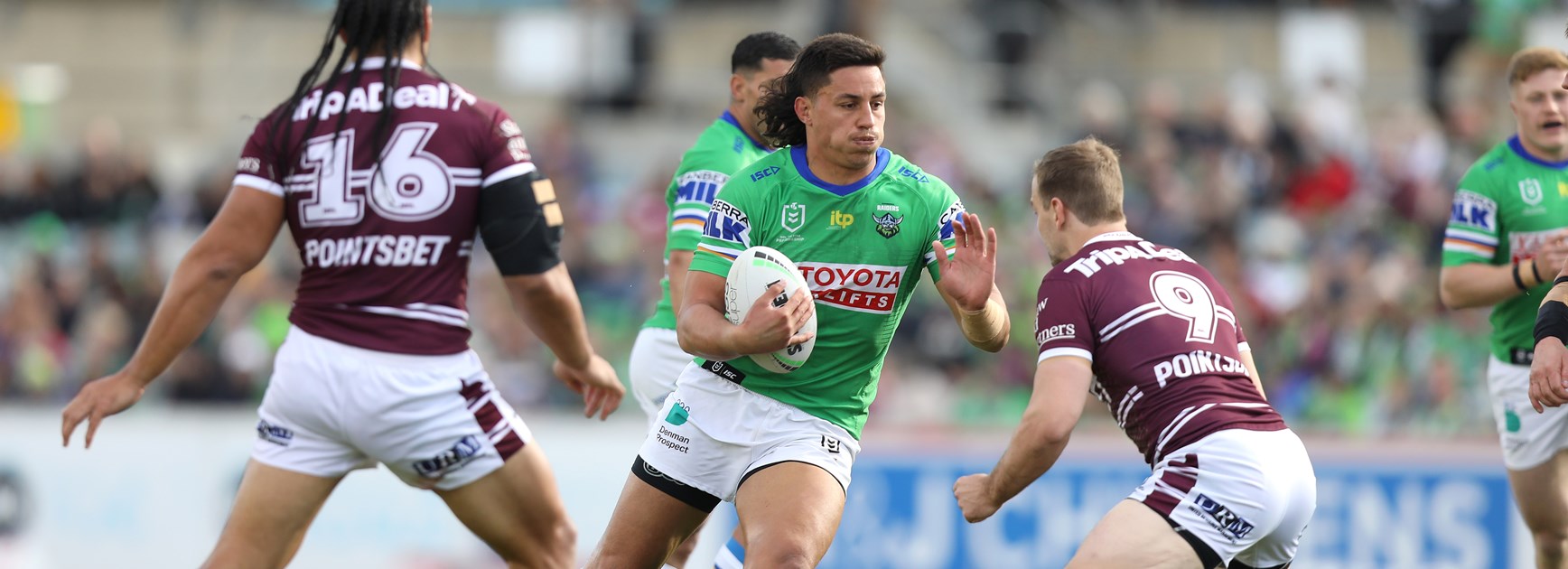 The Raiders piled on five first half tries to lead 28-0 at half-time with Manly's right edge found wanting. The win moves Canberra into eighth place with one round remaining and leaves the Sea Eagles in 11th place on the back of six straight losses.