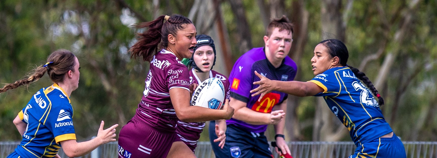 With their confidence up from their historic win last Saturday in the first ever women’s match for Manly, the Sea Eagles opened the scoring in the 16th minute when big prop Tafao Asaua brushed off two defenders in a strong run to score near the posts for a 4-0 lead.