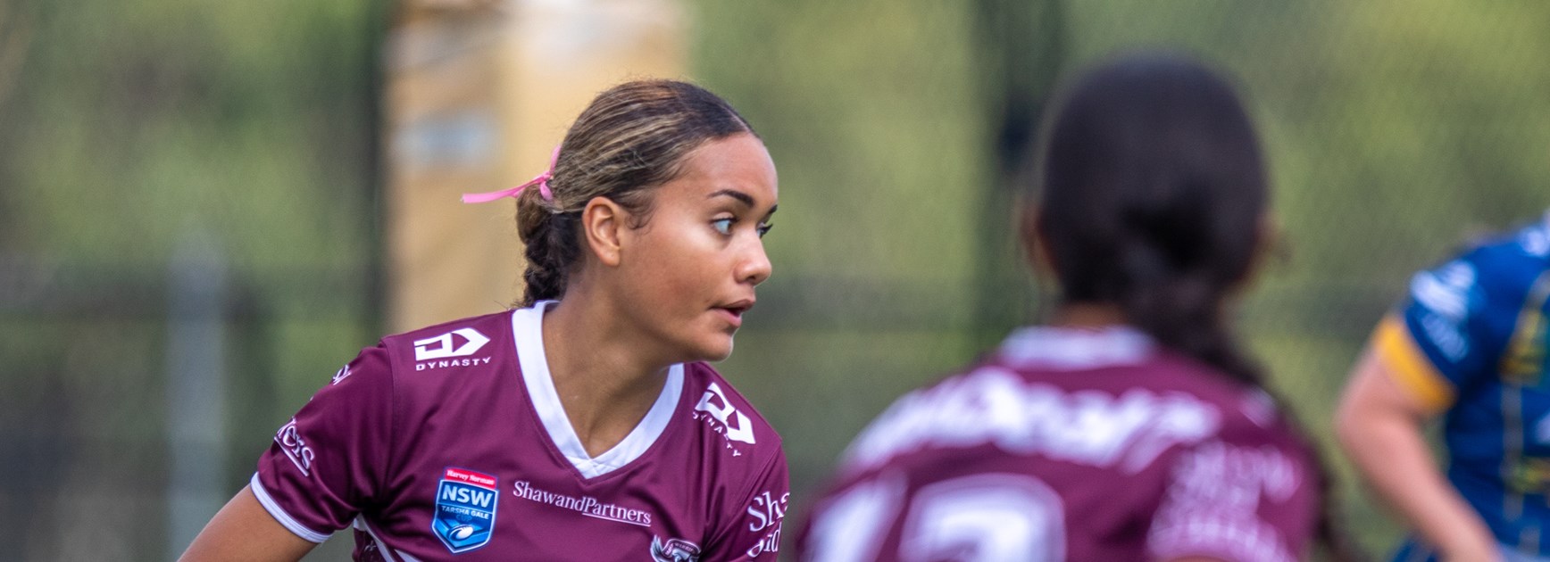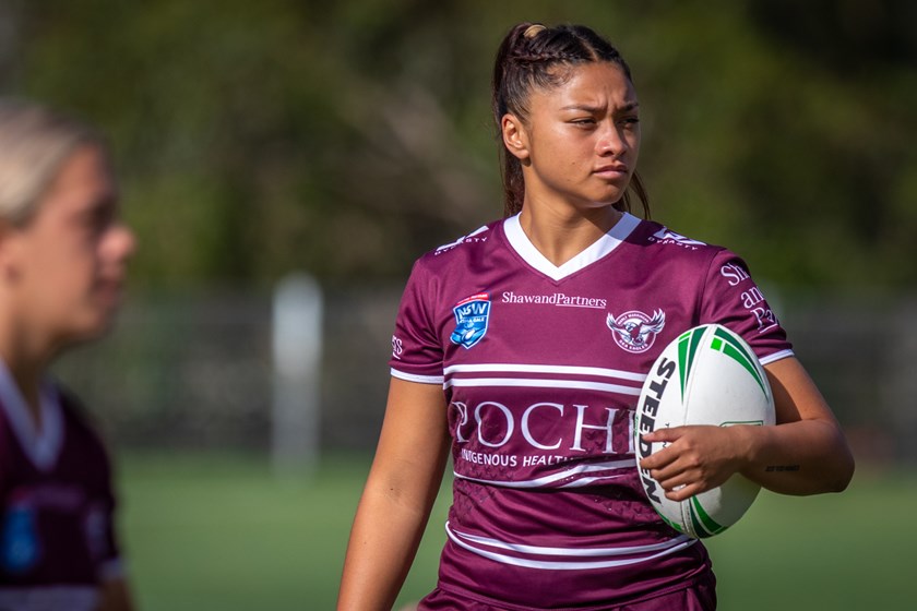 Centre Taleenza Nelson wrote her way into the record books by becoming the first player to score three tries for Manly in their debut season in the Tarsha Gale Cup. (U19s)