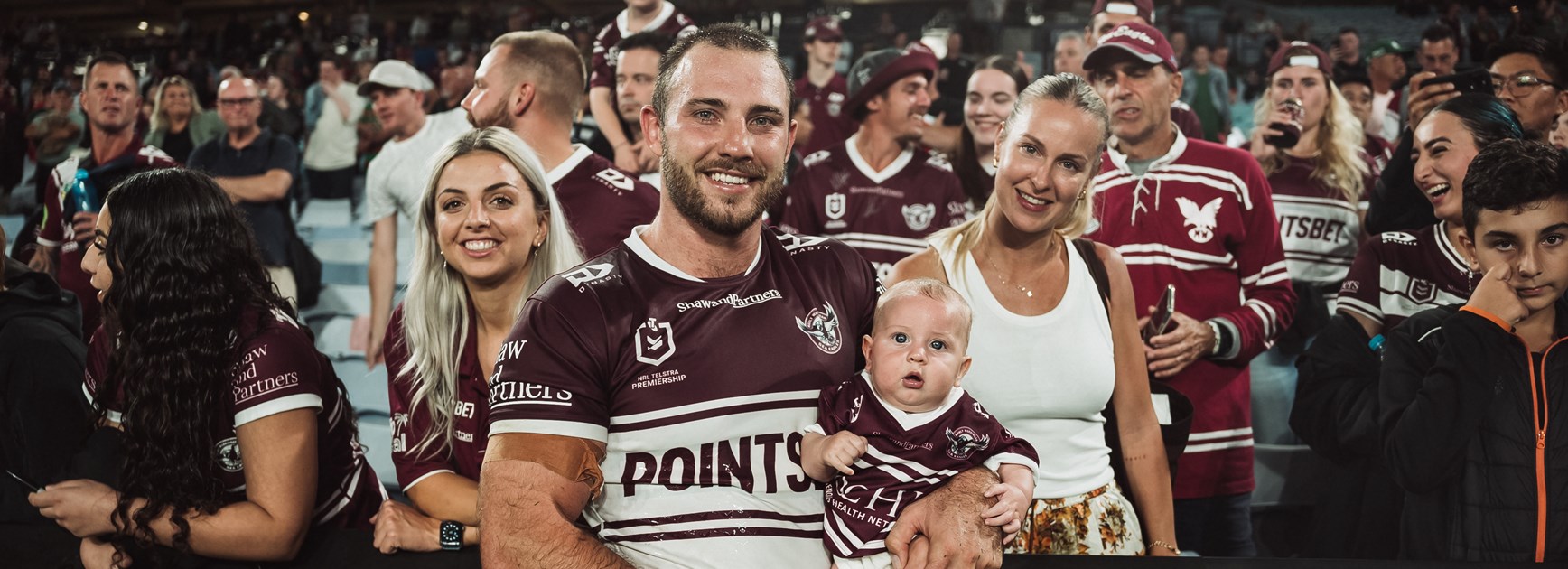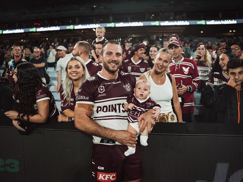 “He was wearing his little Sea Eagles jersey that the club gave to us when Lucky was born last November. It has the name ‘Lawton’ on there and number 11 on it, so that was pretty cool.