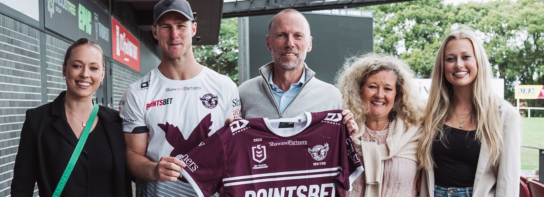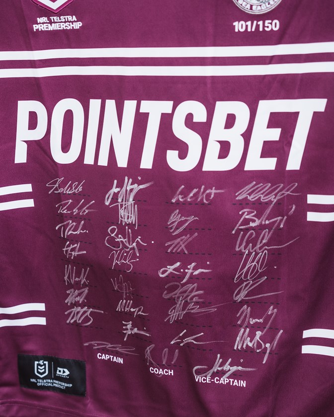 Upon hearing of the family’s news, the Sea Eagles invited Patrick, wife and mum Alison, and daughters Annie and Bella to training at Brookvale where they were presented with a 2023 signed Manly jersey to help in their quest to raise at least $700,000.