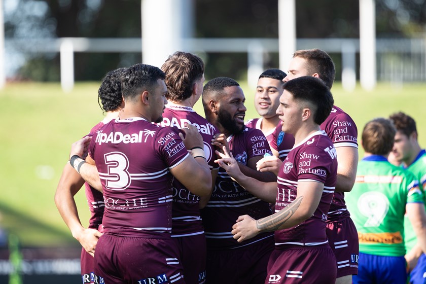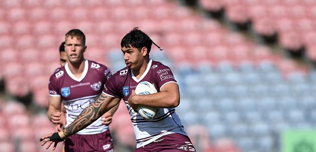 Some nice slick hands out wide saw saw Manly winger Charlie Thompson dive over in the corner four minutes for a 22-0 lead.