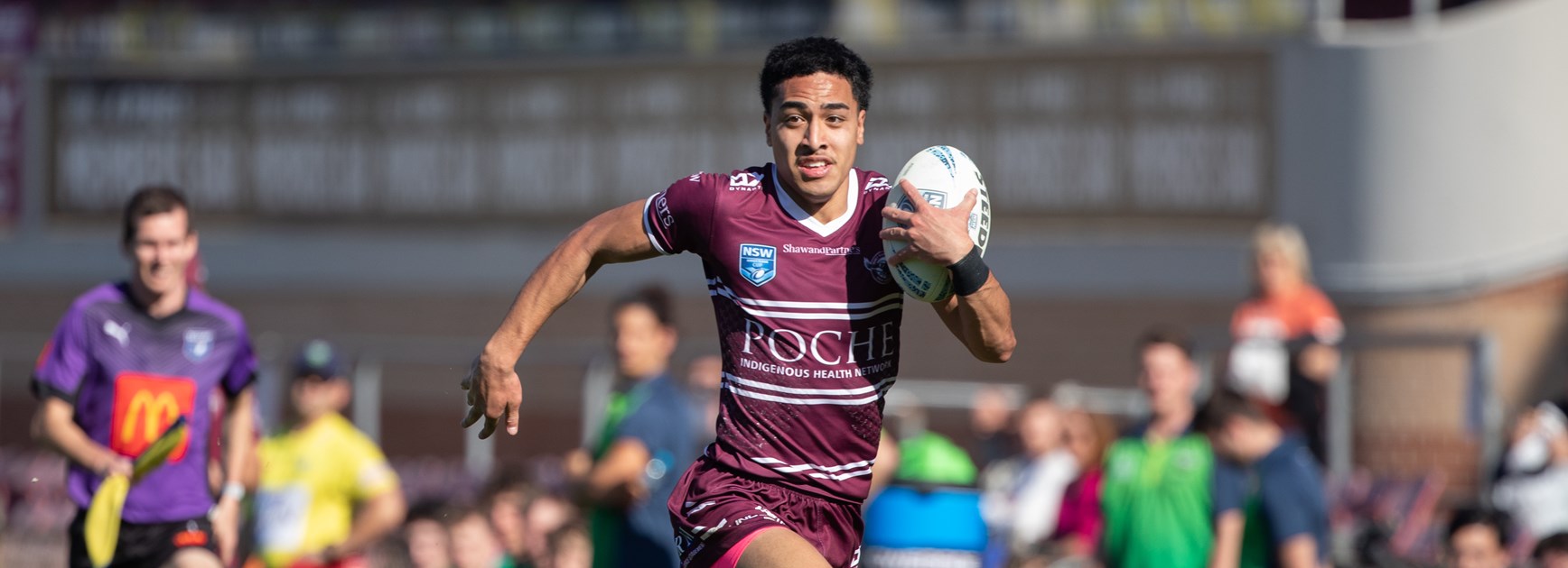 A two try haul from exciting young full-back Lehi Hopoate was one of the highlights in Manly's thrilling 34-32 win over the Canberra Raiders in round 14 of the NSWRL Jersey Flegg Cup at 4 Pines Park today.