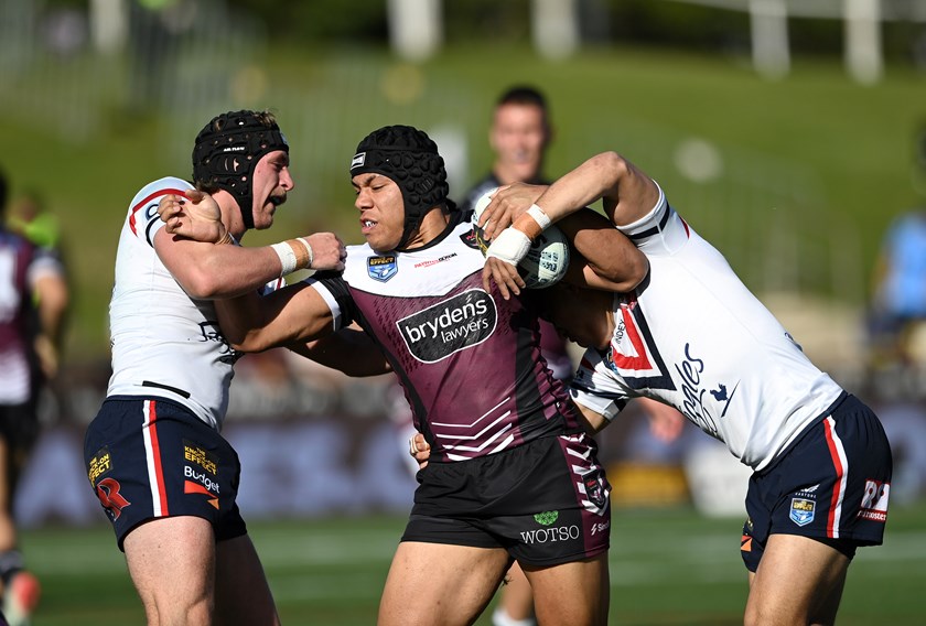 The Sea Eagles bounced back from their tough defensive efforts to score the first points two minutes later through Vaega. The winger timed his run perfectly to take a looping cut-out pass from halfback Jake Arthur before pushing past his opposing winger in the corner. Five-eighth Cooper Johns converted from the sideline for an early 6-0 lead.