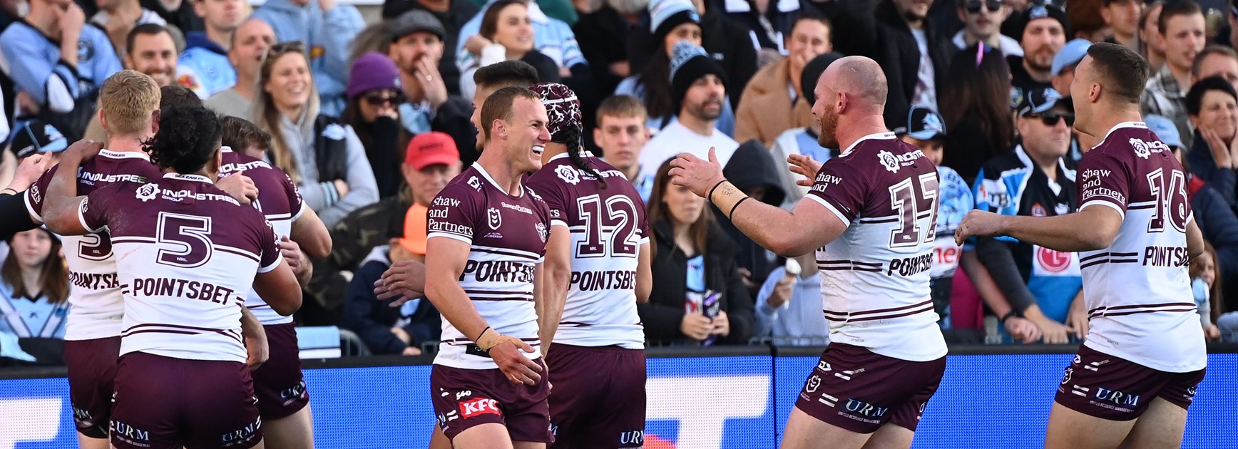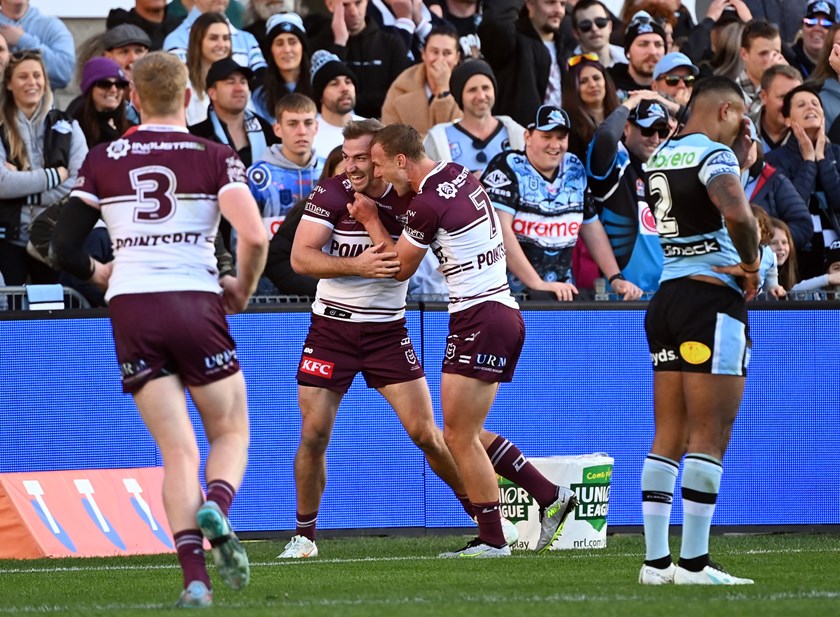 The Sea Eagles dug deep in the final minutes to hold off the Sharks to take victory.