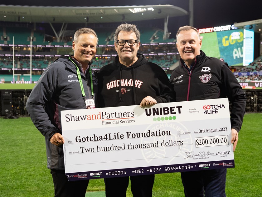 Manly Warringah Sea Eagles Premier Partner, Shaw and Partners Financial Services, have for the second straight year presented the Gotcha4Life Foundation with a $100,000 donation.