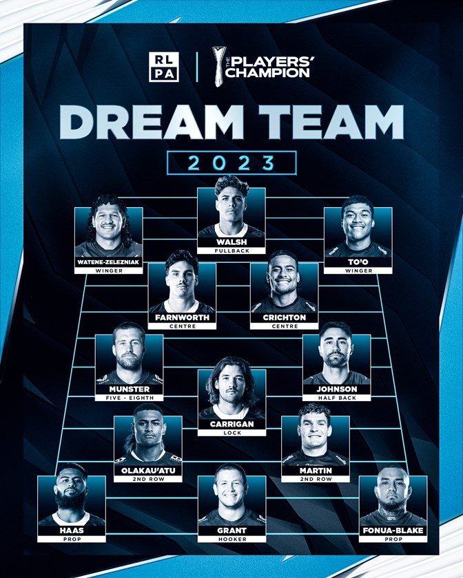 It’s also a year for debutants on the 2023 Dream Team with 10 players being voted the best in their position for the first time – Reece Walsh, Dallin Watene-Zelezniak, Herbie Farnworth, Stephen Crichton, Shaun Johnson, Addin Fonua-Blake, Harry Grant, Haumole Olakau'atu, Liam Martin, and Patrick Carrigan.