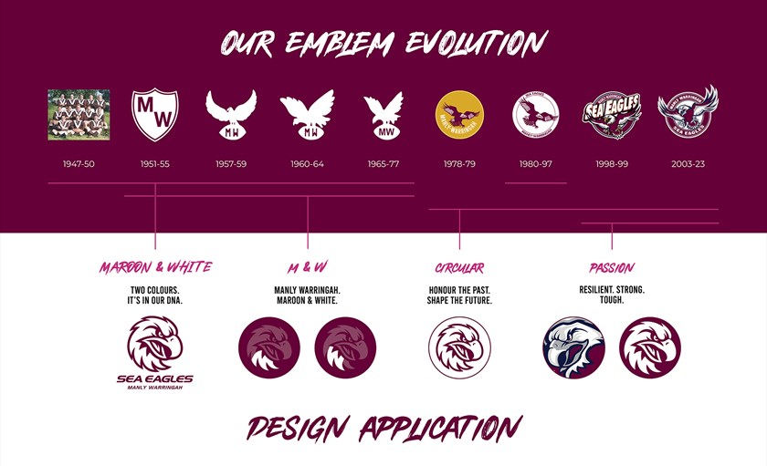 To honour the rich legacy of the Sea Eagles, the traditional Maroon and White scheme will remain at the centre of the team's new identity.