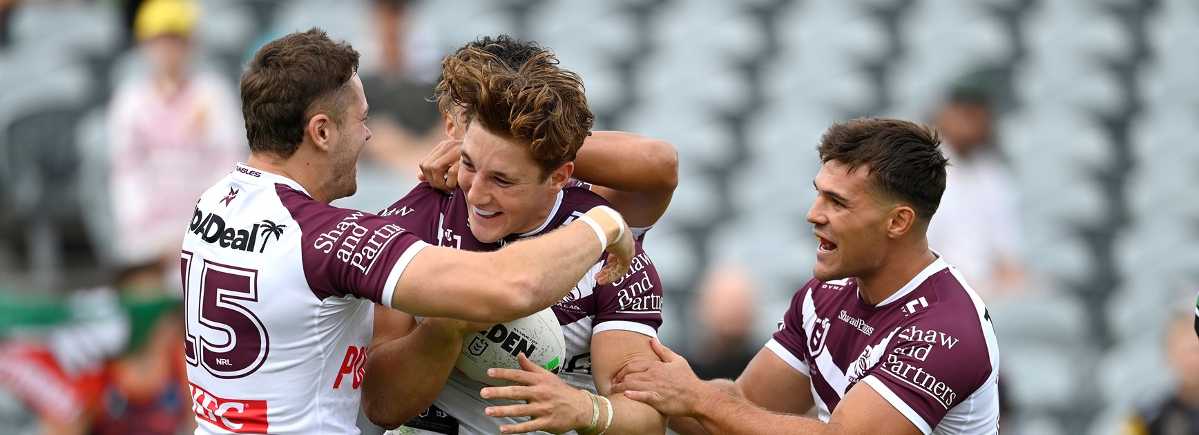 The Sea Eagles overcame a 6-0 early deficit to run out convincing 68-6 winners, with both sides resting their key men ahead of the Pre-Season Challenge beginning next week.