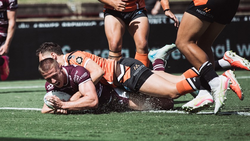 Manly Warringah Sea Eagles fought hard in a gritty match as they were defeated by the Wests Tigers 38-14 in round five of the Jersey Flegg Cup, in the first of three matches at 4 Pines park on Sunday.