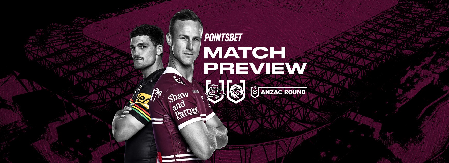 Manly Warringah Sea Eagles tackle the Penrith Panthers in ANZAC Round on Saturday night at CommBank Stadium, Parramatta.