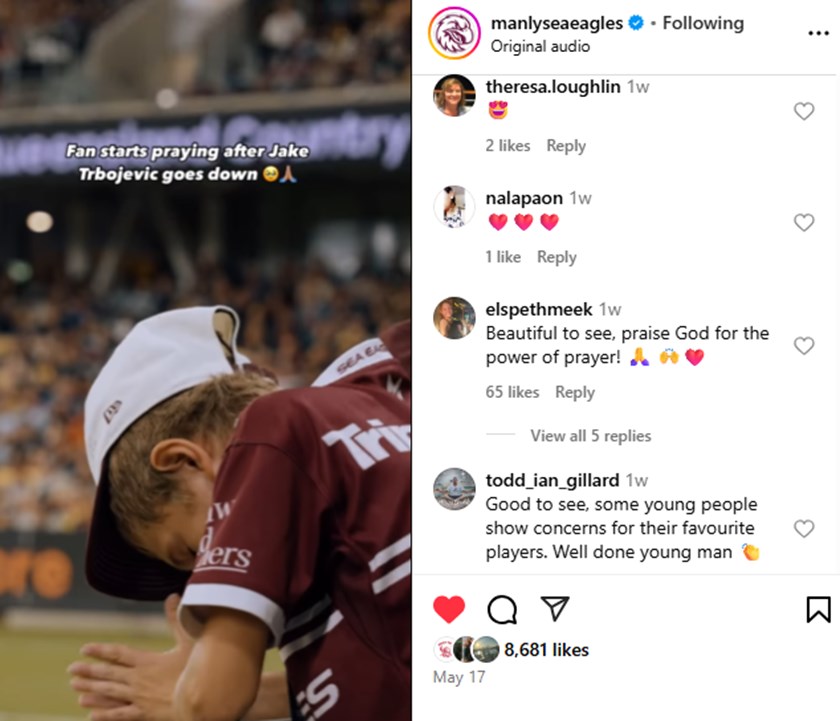 One of those who was moved by the clip on his Insta feed was long-time Manly supporter Matt, who has chosen to remain anonymous.