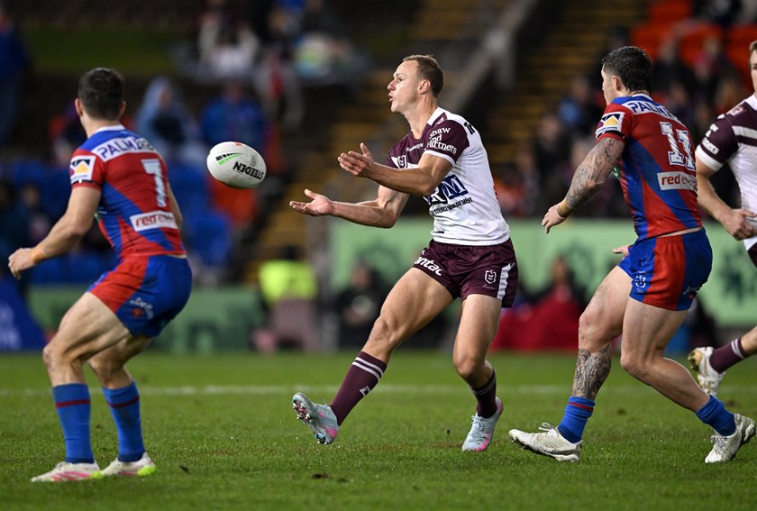 The Knights again caught Manly short on their left edge a few minutes later, and looked certain to score only for Schiller to make a mess of the ball inside to one of his four teammates there in support.