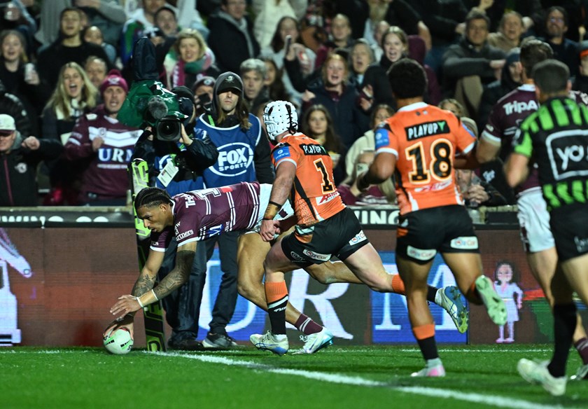 The Tigers were next to score when Alex Seyfarth strolled through a gaping hole on Manly’s right edge from close range to peg it back to 16-4 with half an hour to play.