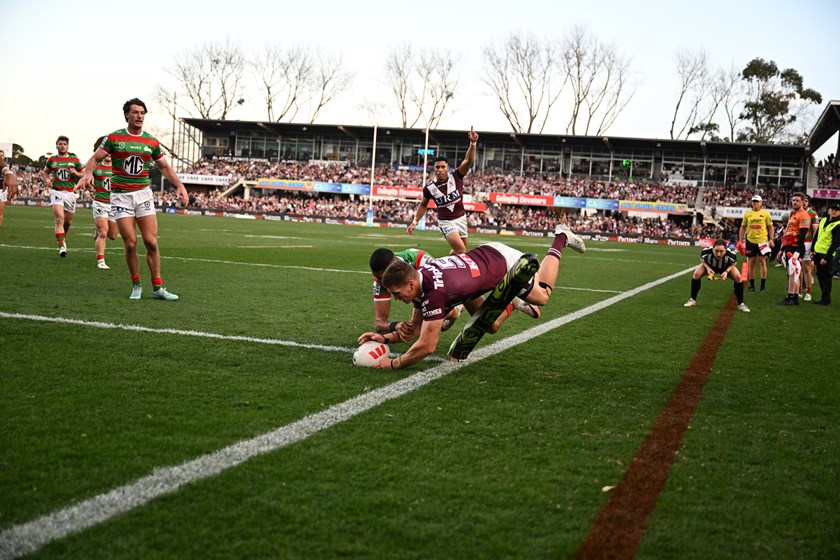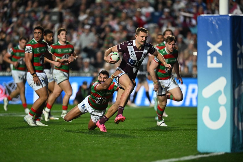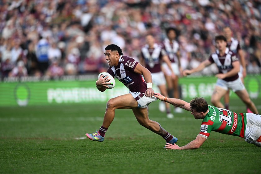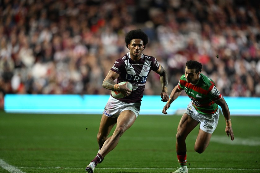 Tom Trbojevic, playing right centre for the second game in a row, had his prints all over Manly’s second try in the 28th minute.