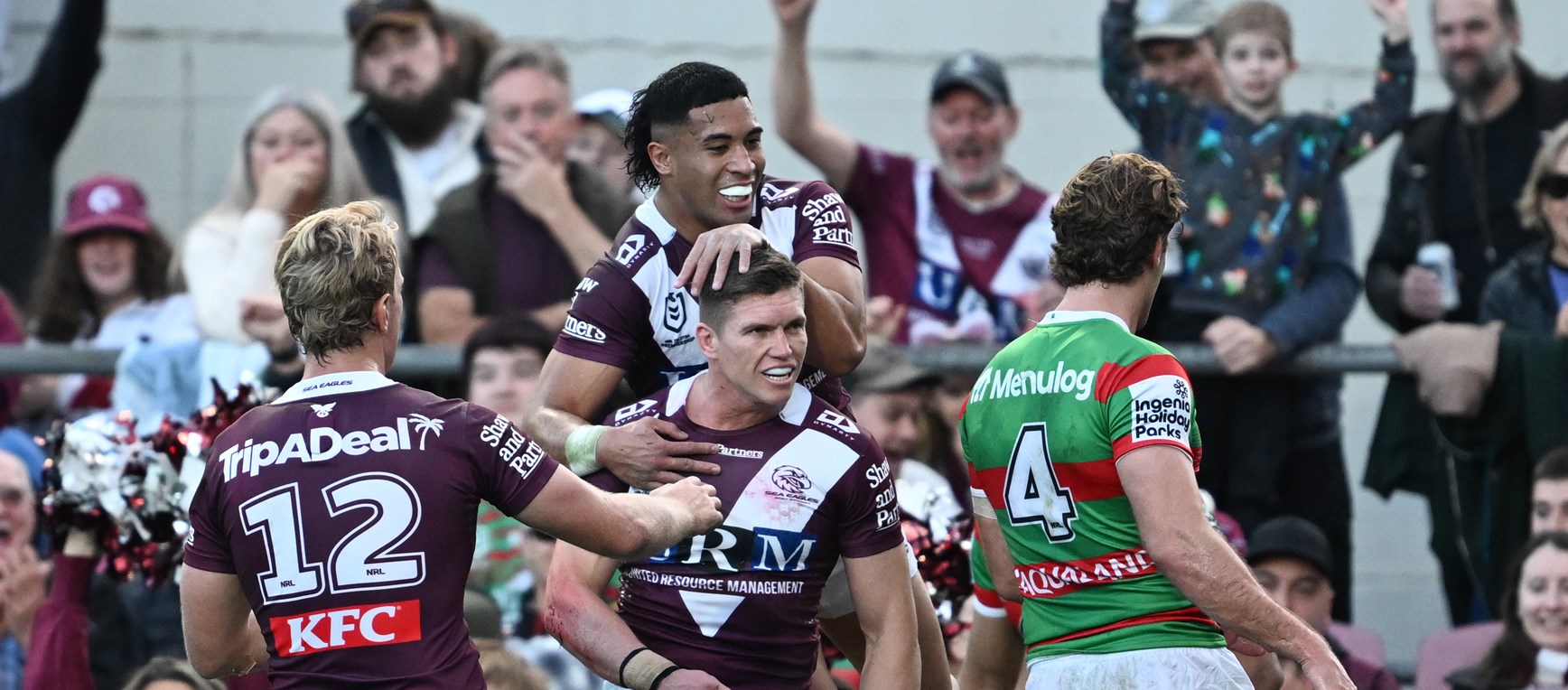 Some nice pics from the Sea Eagles' Round 18 victory over the Rabbitohs at 4 Pines Park