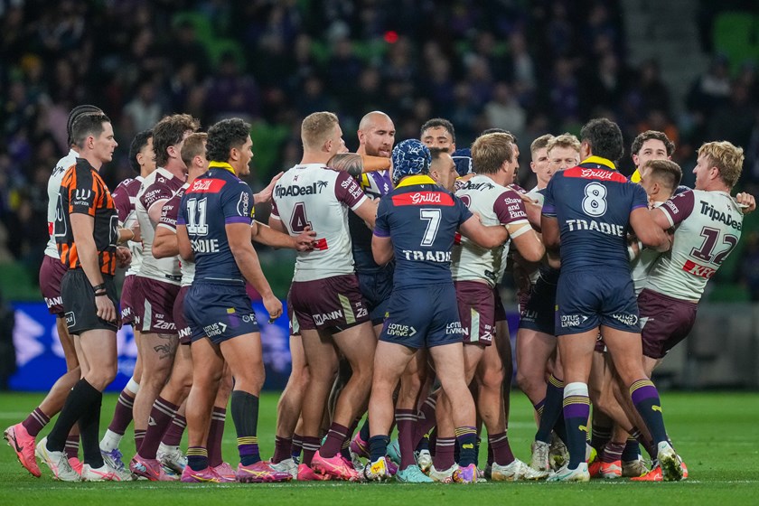 Tempers boiled over a couple of times in the first half. Manly receiving a penalty after a push and shove between Matt Lodge and Tui Kamikamica, and the Storm receiving a penalty when Jake Trbojevic engaged in a heated confrontation with Trent Loiero.