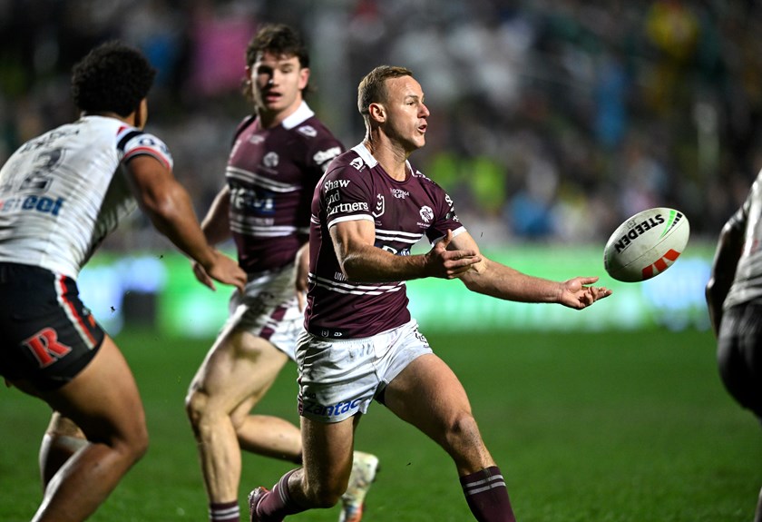 The Roosters went to the break leading 12-4 despite only having a few attacking sets in Manly’s end, with both first half tries coming from the boot of halfback Sam Walker.
