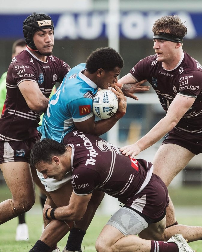 Manly bagged a consolation try in the final stages of the match. Captain Broden Konz took a pass metres out from the line and dummied the ball out wide before spinning out of a tackle and scoring under the posts to cut the deficit to 34-16.